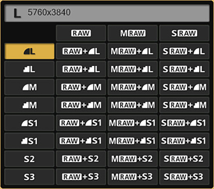 ② 촬영 이미지를 JPG로 선택합니다. (L/M/S와 같이 사이즈만 표기되어 있으면 보통은 JPG입니다. RAW는 원본 데이터 파일입니다. 처음엔 다루기 어려우니 이후에 천천히 알아가도록 합니다.)